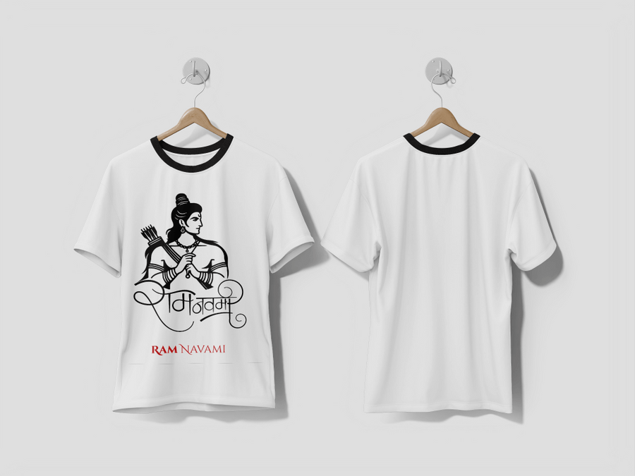 NEXT PRINT Ram navami Hindi calligraphy greeting with lord ram illustration design t-shirt - Next Print