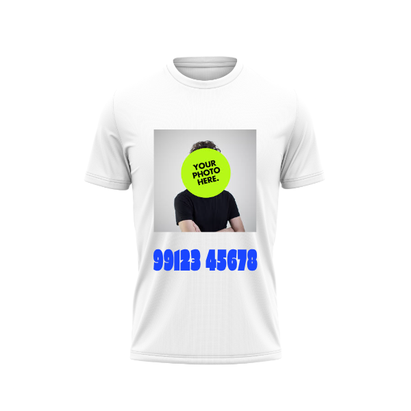 Your Photo With Mobile Number Print T-Shirt.